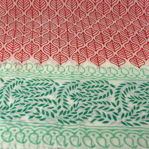 Red and Green Leaf Design Cotton Scarf - Asha Handicrafts