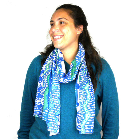 White and Blue Ikat Cotton Scarf Handmade and Fair Trade