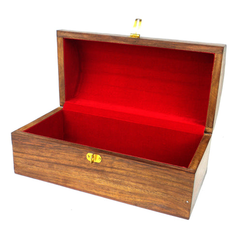 Featuring a paisley flowers design carved on a rounded chest lid, this box with hinged lid is carved by Indian artisans. The box is 10 by 5 inches and 5 inches tall.